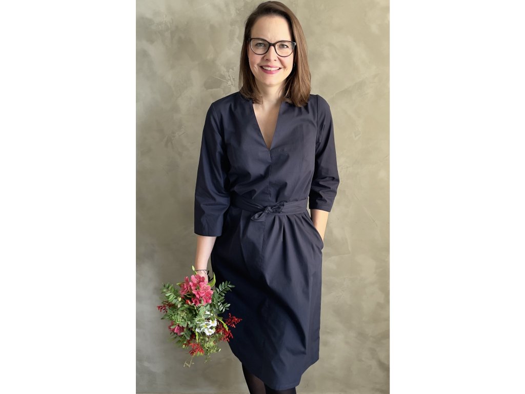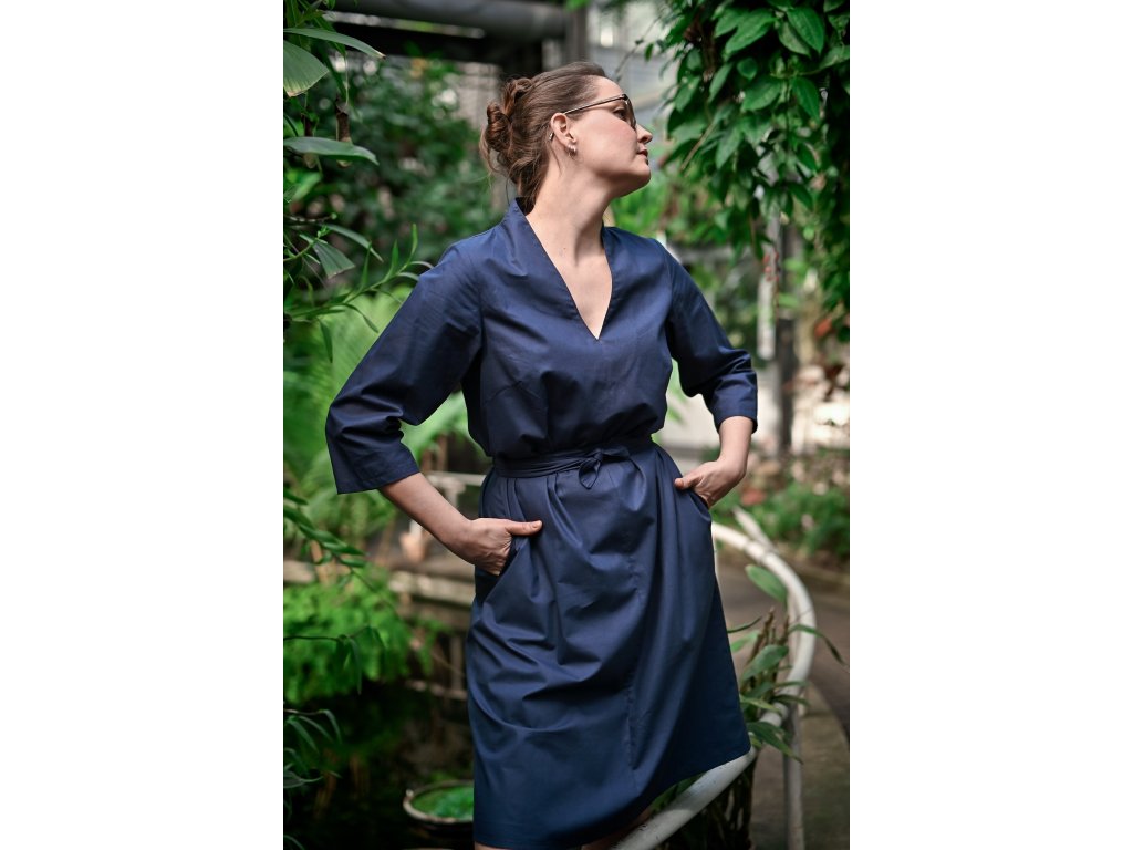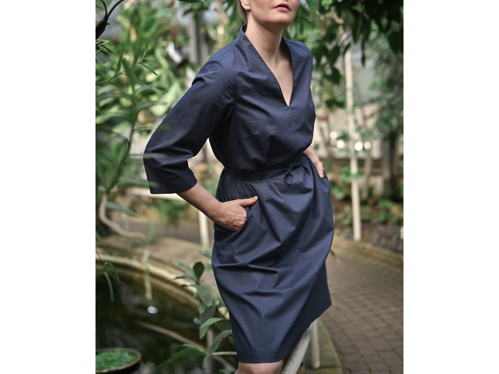Šaty áčkového střihu z tmavě modrého bio popelínu.