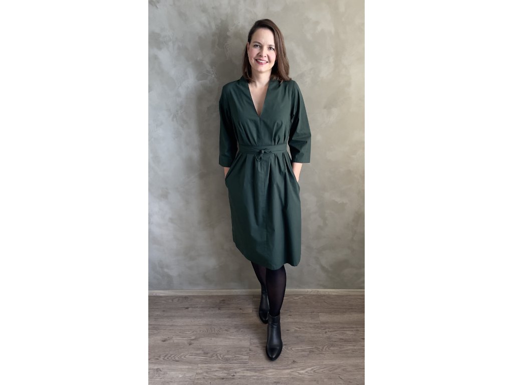 Šaty áčkového střihu z tmavě zeleného bio popelínu.