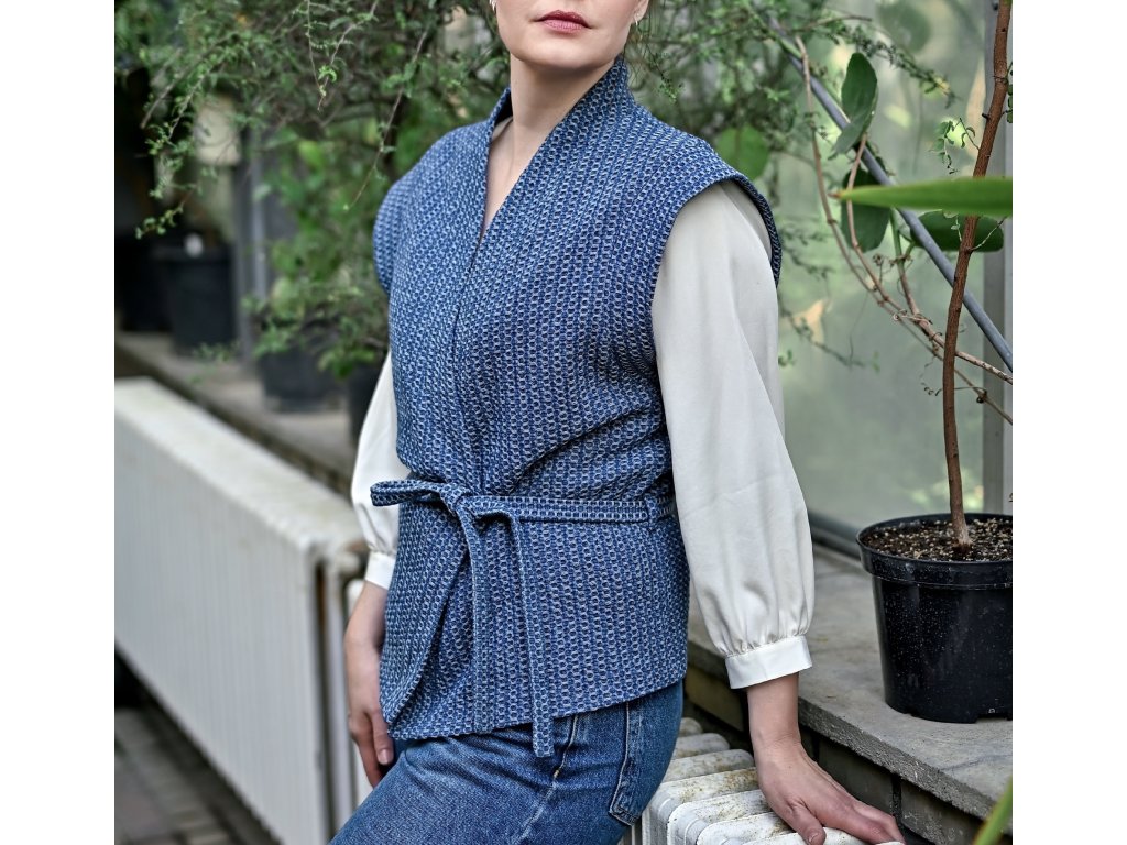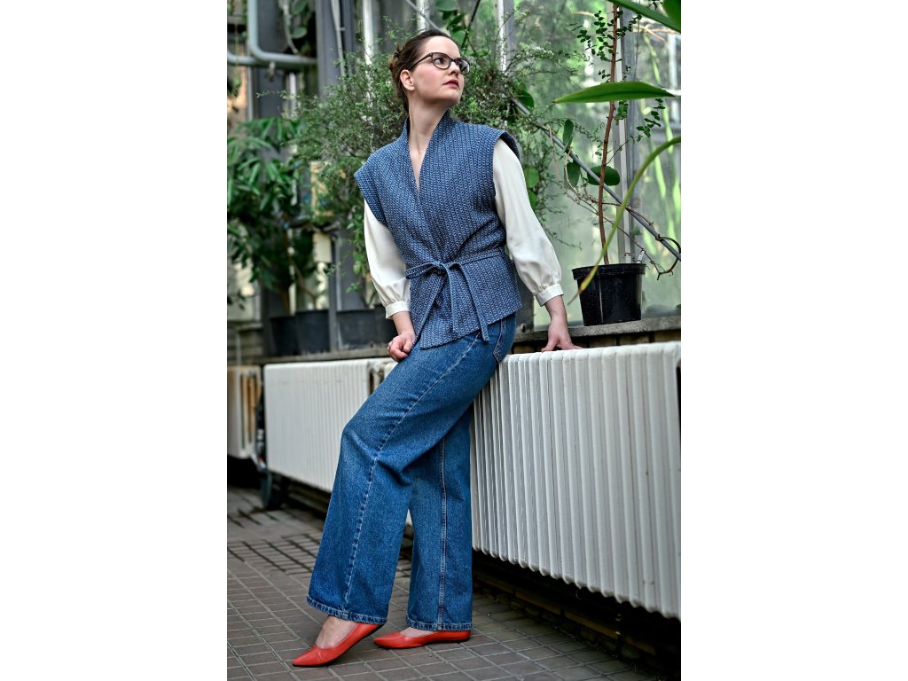 Vesta je ušita ze strukturovaného denimu zjemněného o viskózu.