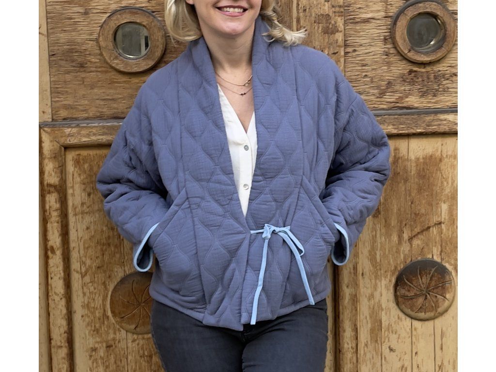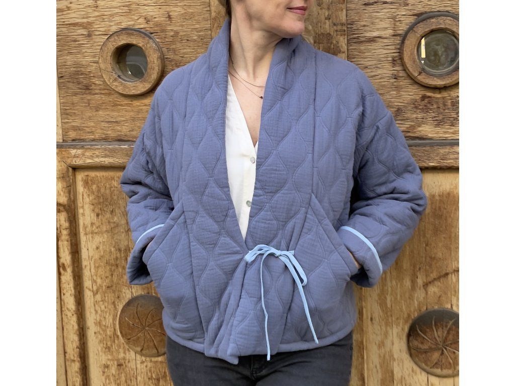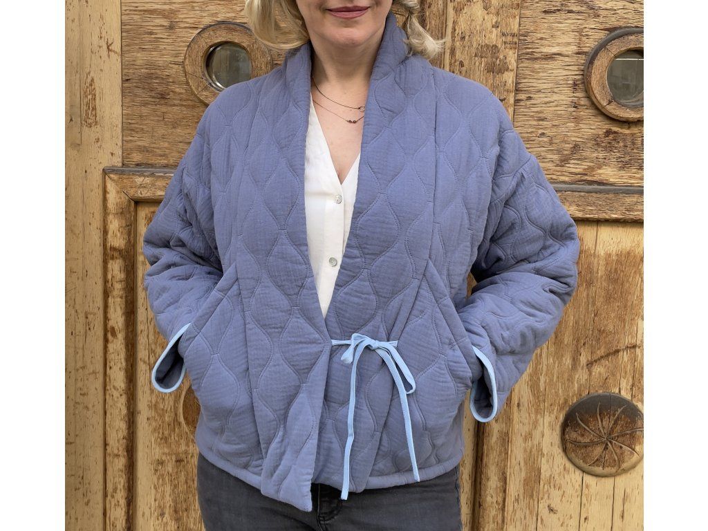 Kabátek je ušit z jemného prošívaného mušelínu (100% bavlna)